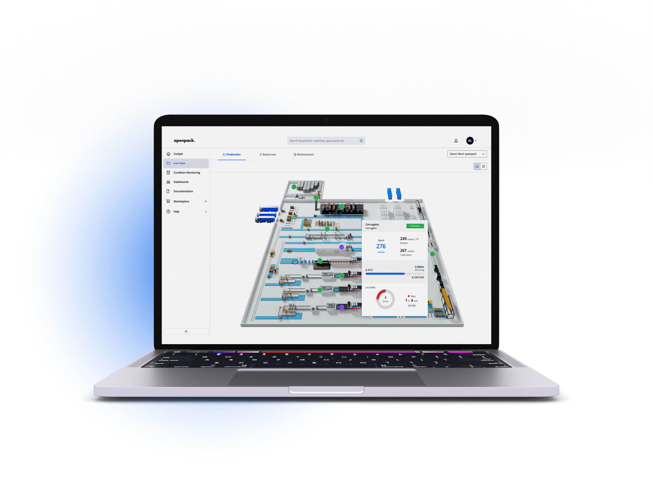 Behalte den Überblick über deine Produktion in unserer 3D-Live-Ansicht!